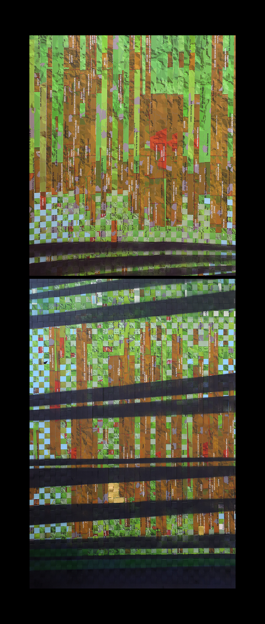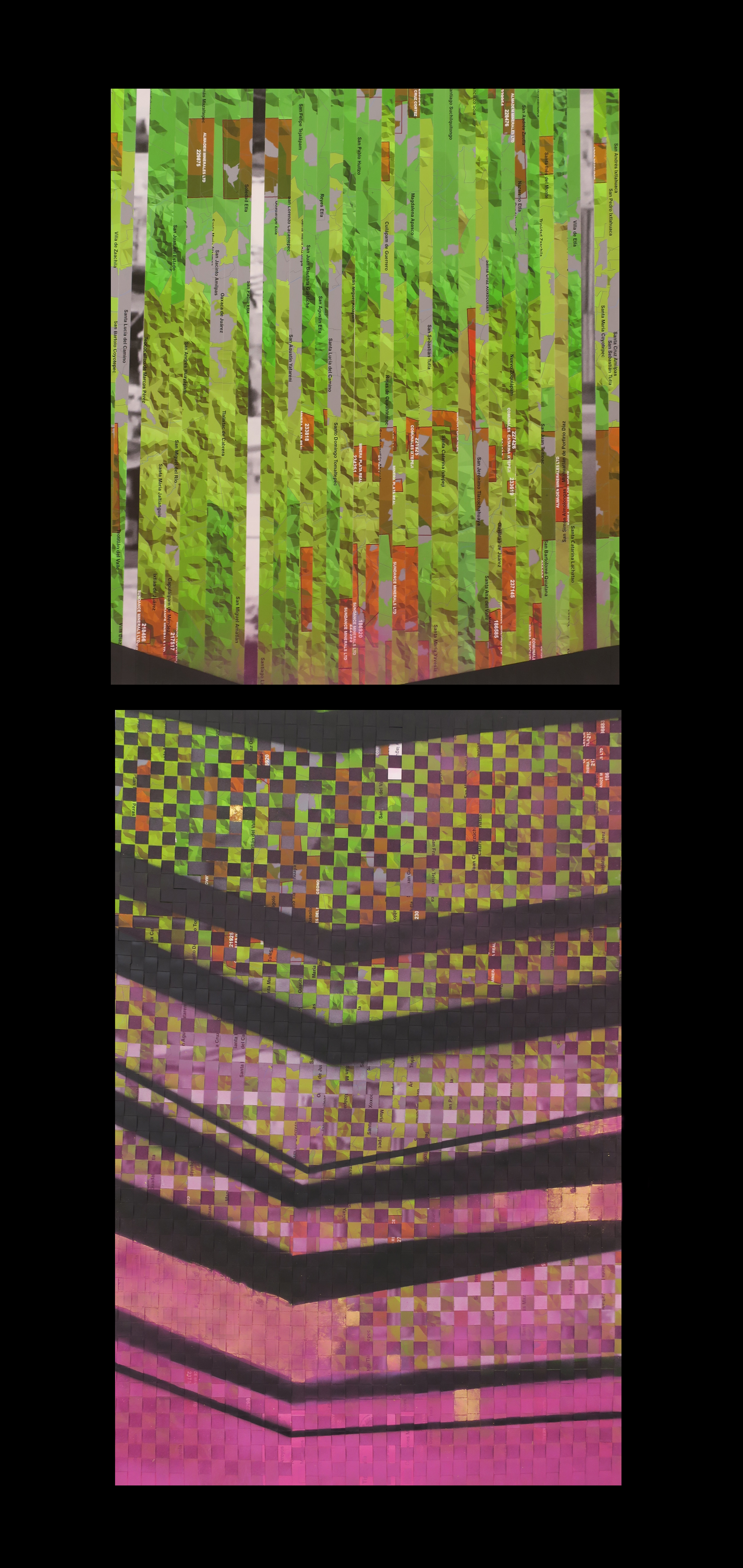 Serie en la que se entretejen mapas de las minas activas en la zona de Monte Albán (Oaxaca, México) e imágenes del terremoto de 1931 (Oaxaca) que destruyó una ciudad pero que fundó otra completamente orientado al turismo.
